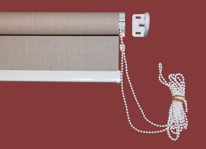 9. Stáhněte látku rolety na nejnižší místo tak, jak ji budete používat. Nacvaknutím malé spojky na řetízek u hřídele nastavíte maximální roztažení rolety. |